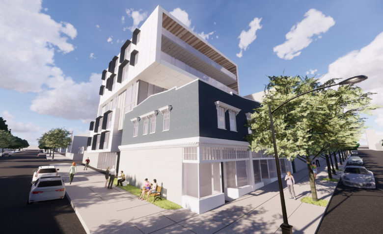 This project consists of two distinct parts – the revitalization of an existing heritage building and the addition of a new 6-storey residential building at the back of the site. The main challenge was to create a volume that wasn’t imposing, that is respectful of the existing heritage building.
