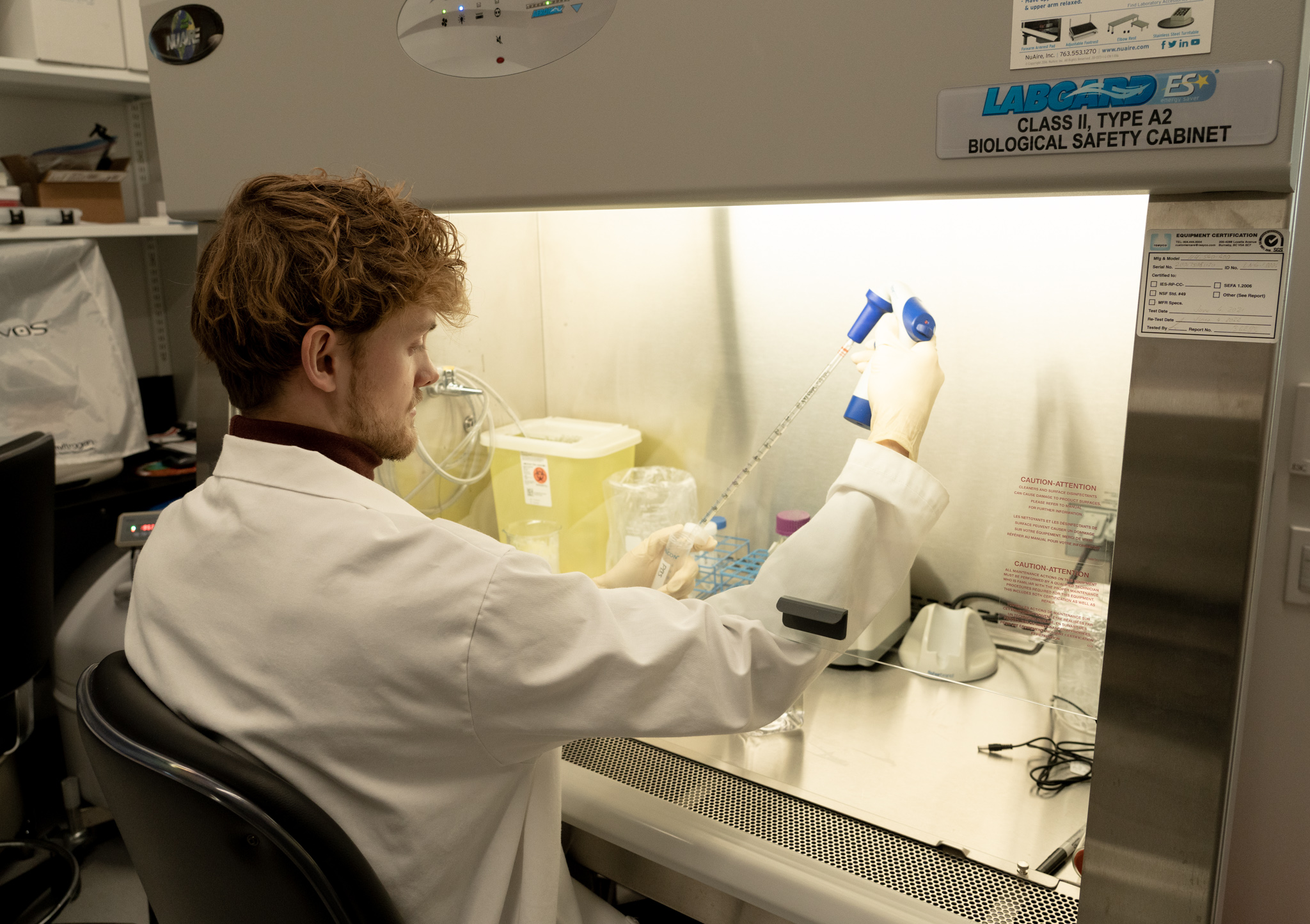 Brendan Morris-Reade: We’re doing mammalian cell tissue culture in this lab so in terms of sterility there is a huge difference from other labs because you have to be very cautious about what you expose them to and make sure everything you’re culturing is what you intend to!