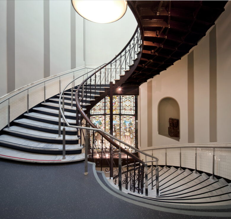 Proscenium worked with the City of Vancouver in 2010 to design upgrades to this important heritage building on Hastings and Main Street. The renovation included upgrading windows, skylights and the central spiral staircase, including adding a stainless steel handrail for improved patron safety and security. We also restored historic material on the interior of the building, including marble stair treads, cast iron stair structure, ceramic floors and wall tile. The exterior got a clean and repainting of concrete and stonework and relaying of granite entry stairs.