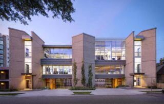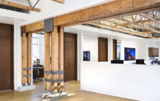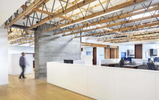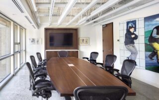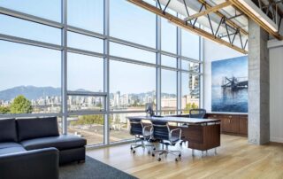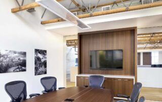 The project transforms a 1970s office building into a new corporate headquarters. Renovations to both the interior and exterior are designed to reflect the client’s professional image. Warm materials and clean lines led the design of the space, as well as the desire to create a space that had a sense of permanence while still being flexible for future growth and change. Offices feature floor to ceiling windows taking advantage of city views and bringing an abundance of natural light into the core of the building. The original wood structure was exposed and restored, bringing texture and warmth as well as a bit of history to the otherwise modern space.