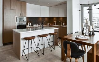 Proscenium served as the interior designer for this new 10-storey residential development in downtown Victoria. Each of the modern suites have customizable interiors, allowing for choice of one of the 3 colour schemes available in light, medium or dark tones. The design was driven to provide the perfect balance between innovation and longevity, form and function.