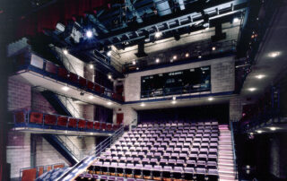 Evergreen was designed to take full advantage of its lakeside setting including the natural vertical elevation that allows for a separation between the main theatre seating space and the public circulation areas. A unique feature of the facility is its flexible main auditorium which can be configured for either end-stage or flat-floor use, allowing for a variety of uses. Its high ceiling height and interior seating ledges provide excellent acoustics.