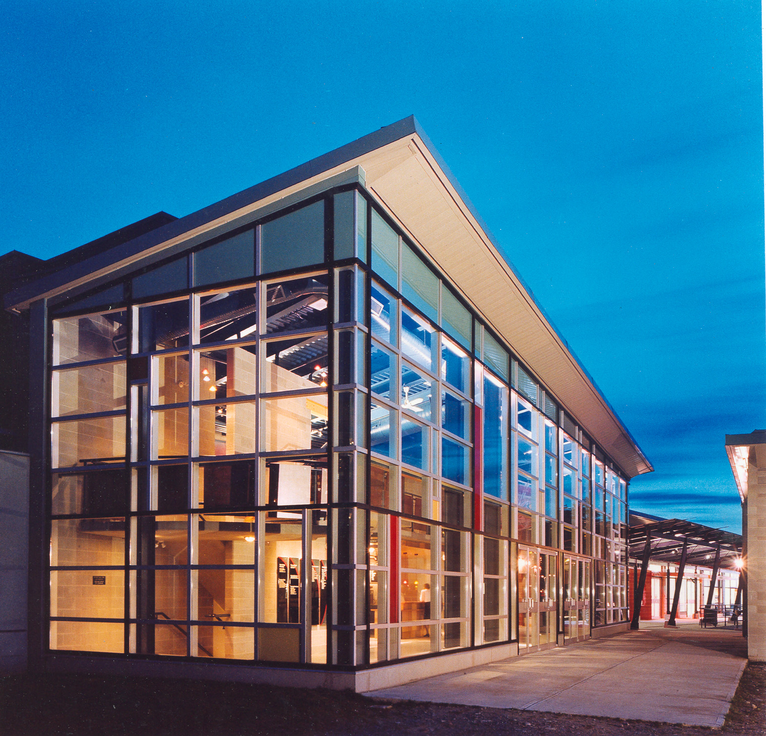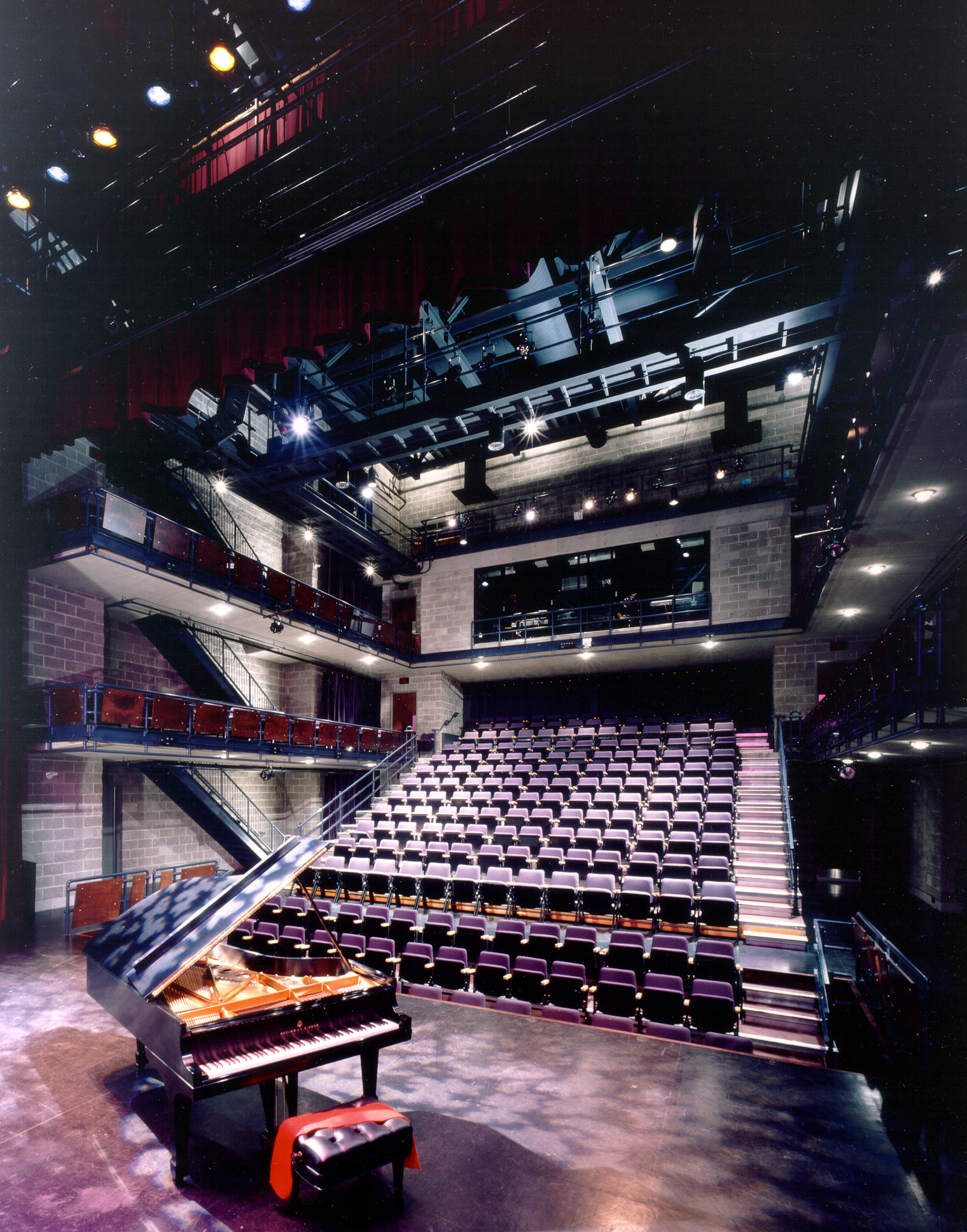 Evergreen was designed to take full advantage of its lakeside setting including the natural vertical elevation that allows for a separation between the main theatre seating space and the public circulation areas. A unique feature of the facility is its flexible main auditorium which can be configured for either end-stage or flat-floor use, allowing for a variety of uses. Its high ceiling height and interior seating ledges provide excellent acoustics.