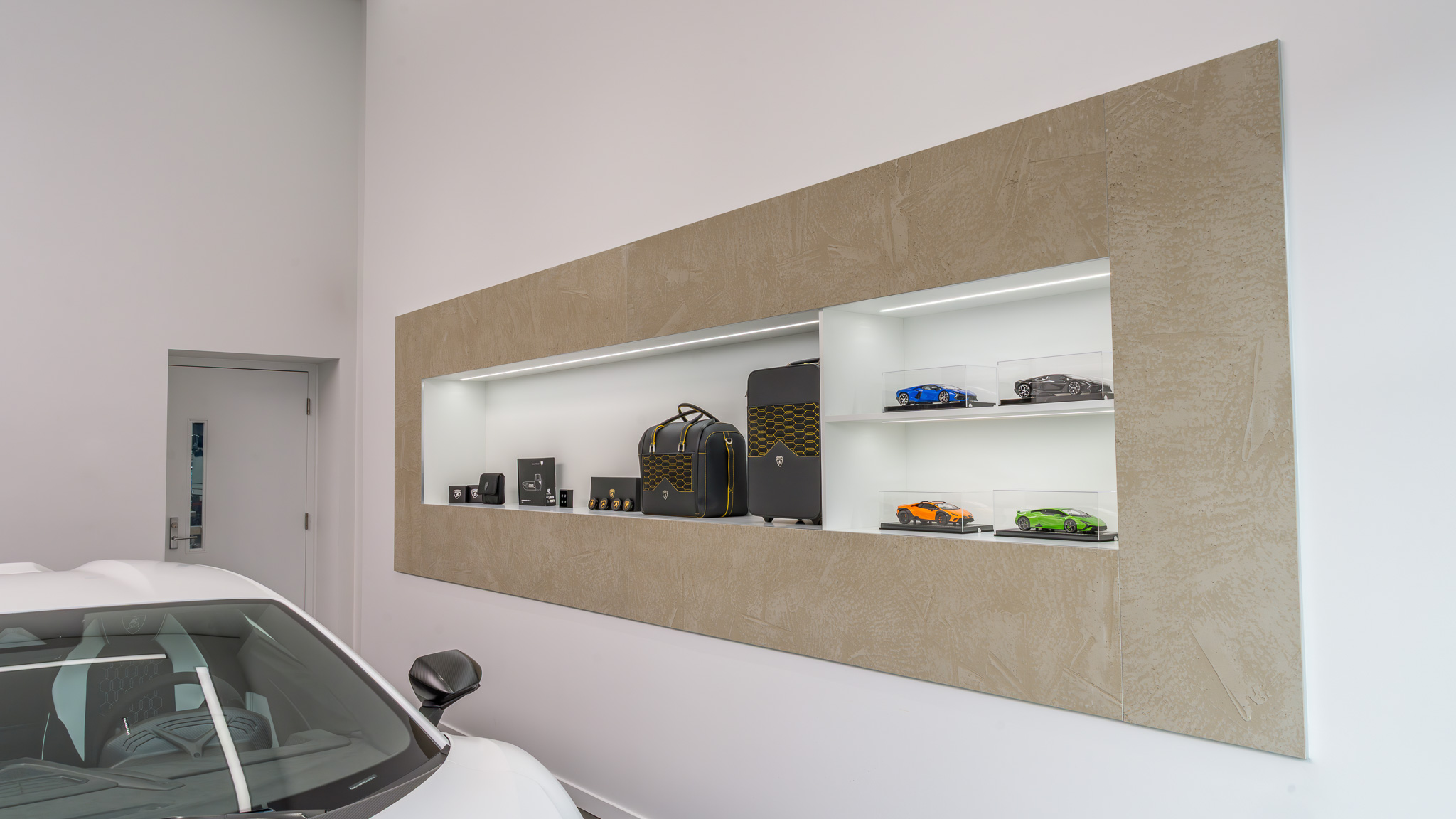 Proscenium was retained by Dilawri Group to refresh and expand their Lamborghini dealership located in Vancouver. The project transformed two existing 2-storey buildings on West 2nd Ave into an upgraded facility that reflects the company’s bold, luxury brand identity. The new design supports an elevated customer experience, reaffirming the dealership’s position within Lamborghini’s global portfolio of exceptional showrooms. Proscenium’s scope included providing architectural and interior design, including FF&E, for the ground-level retail areas and upper-level offices in both buildings.