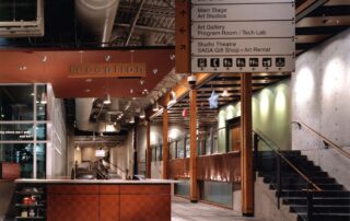 The redevelopment of the Surrey Arts Centre responded directly to the needs of a thriving arts and cultural community that had long outgrown its space. In 2001, Proscenium was retained to design a renovation and addition to the existing facility as recommended in the Functional Program Study (developed by Proscenium in 2000). The program included a 450-seat playhouse theatre, 129-seat studio theatre, art gallery, ceramic studio, visual arts classrooms and offices.