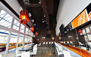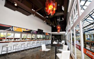 Located at the entrance to Granville Island overlooking Broker’s Bay, the new home for Vancouver’s Theatresports transforms a former yacht sales office into a cabaret style theatre. The program for the Improv Centre includes a performance stage, flexible seating for 180 audience members, and a bar and concession area.